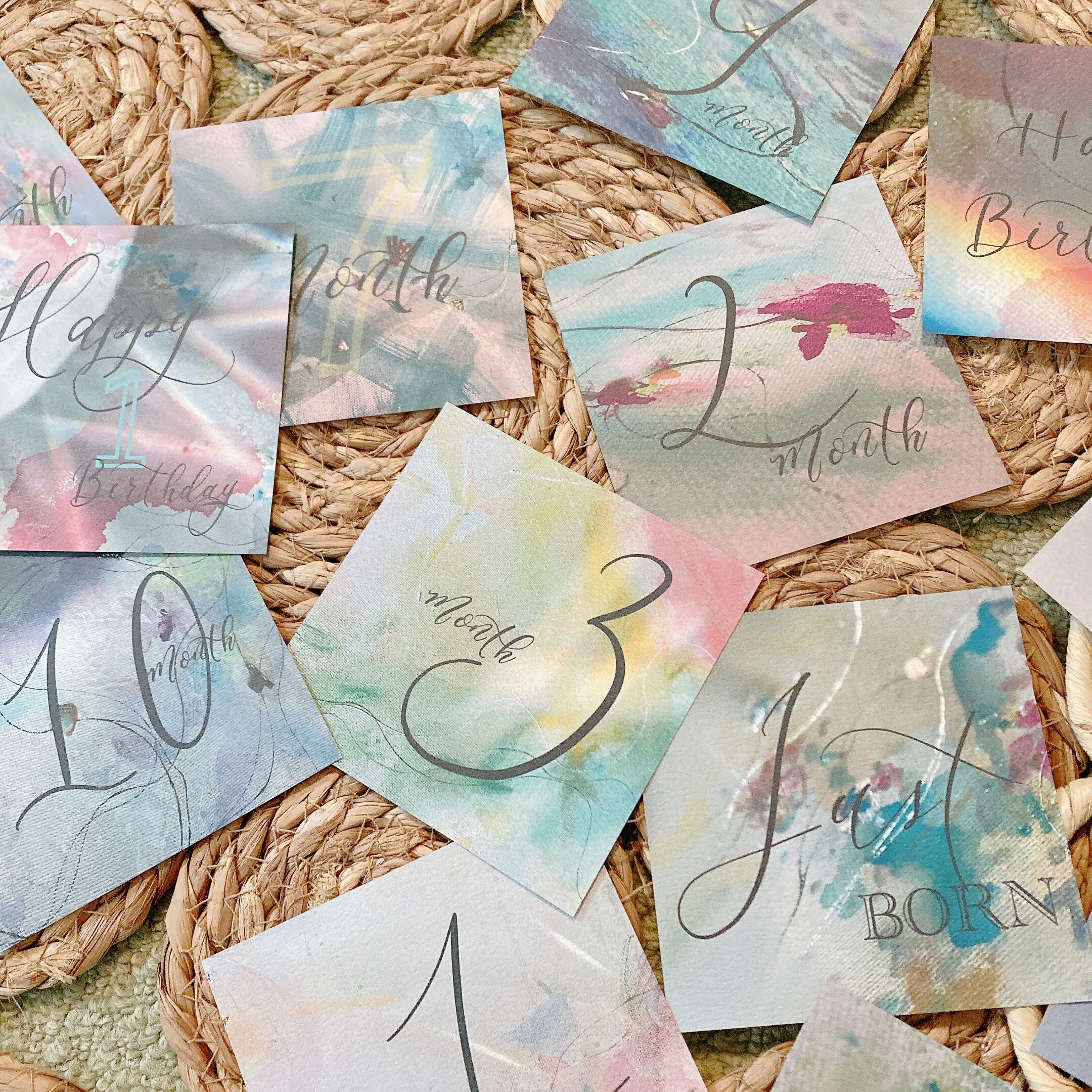 美しいラインアートを背景にカリグラフィー文字を入れたMonthly Cardです。